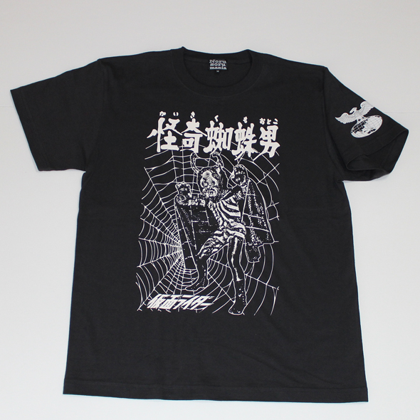 大人が着られる大人のための特撮シリーズアパレル、バンダイとのコラボ企画第二弾です!<br>第二弾も1971年(昭和46年)から今なおシリーズが続いている「仮面ライダー」です。<br>今回はショッカー怪人の中でも記念すべき放映第1話に登場の蜘蛛男をクローズアップ!<br>「怪奇蜘蛛男」の文字はテレビ画面に映されたサブタイトルの書体を忠実に再現しています。<br>子供向け番組のため漢字にふりがながふってあるところもきっちり再現しています!<br>左袖のさりげなく入ったショッカーマークもポイントです!