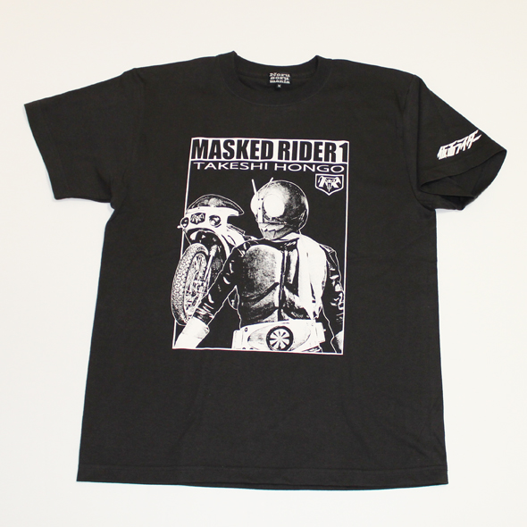 大人が着られる大人のための特撮シリーズアパレル、バンダイとのコラボ企画第三弾です!第三弾は変身ブームの火付け役「仮面ライダー」の中でも記念すべき第一作目、初代一号ライダーです。第13話まで活躍した「旧一号」の愛称で親しまれている全体的に黒っぽいカラーリングが特徴の仮面ライダーです。しかし初期の怪奇ムードや大人びた雰囲気がすぐに子供たちに受け入れられたようではなかったようで、ヒーロー物としての人気が上昇していったのは、おなじみの変身ポーズの導入などシリーズの方向性を修正した二号ライダーの登場以降だったようです。その分この旧一号ライダーは以降のライダーとは違った独特の雰囲気があり今なお大人のファンが多い理由ではないかと思います。