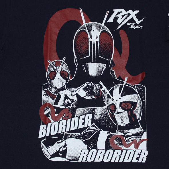 昭和と平成の狭間に放映された「仮面ライダーBLACK RX」は「仮面ライダー」の原作者、石ノ森章太郎本人が直接関与した最後のテレビシリーズでもある。前作「仮面ライダーBLACK」のヒーロー像を継承しつつも更なる要素を与えられたRXは、仮面ライダー史においてもまさに昭和と平成の架け橋となるにふさわしい作品となっている。今回のTシャツにはそんな新要素、RXの強化変身した姿「ロボライダー」と「バイオライダー」、そして自我を持つRX専用マシン「ライドロン」をプリントしてあります!