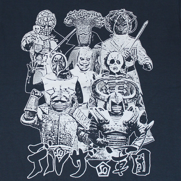 仮面ライダーストロンガ―以前のライダーシリーズに登場した、悪の組織の大幹部クラスに匹敵する戦闘力を持つ、「遠い魔の国」からやってきた改造魔人集団「デルザー軍団」!そのデルザー軍団のストーリー中盤までの8体の改造魔人をプリントしてあります!ご要望の多かったデルザー軍団Tシャツが登場です!