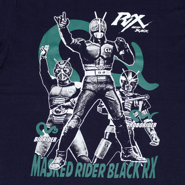 昭和と平成の狭間に放映された「仮面ライダーBLACK RX」は「仮面ライダー」の原作者、石ノ森章太郎本人が直接関与した最後のテレビシリーズでもある。前作「仮面ライダーBLACK」のヒーロー像を継承しつつも更なる要素を与えられたRXは、仮面ライダー史においてもまさに昭和と平成の架け橋となるにふさわしい作品となっている。RX代2弾Tシャツにはそんな新要素、RXの強化変身した姿「ロボライダー」と「バイオライダー」、そして自我を持つRX専用マシン「ライドロン」をプリントしてあります!