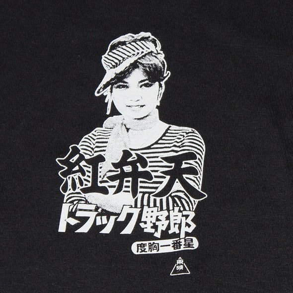 映画「トラック野郎」シリーズがスタートする以前からトラックドライバーに絶大な人気があった八代亜紀!そんな八代亜紀が女トラッカー「紅弁天」役でシリーズ5作目「度胸一番星」に登場した事でさらにトラックドライバー達のマドンナとして現在に至るまで愛され続けています!キュートなキャラクタ―「紅弁天」をプリントしたTシャツはシリアルナンバー付400枚完全限定品です!ノルソルマニアの関連shopと八代亜紀コンサート会場などでしか手に入りません。