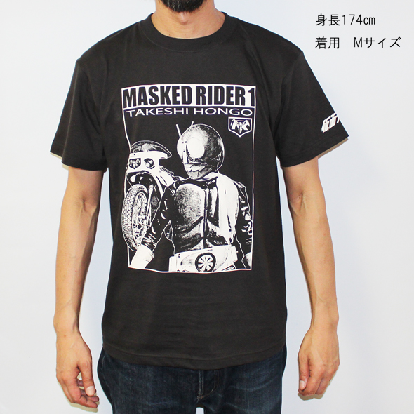 商品説明: 大人が着られる大人のための特撮シリーズアパレル、バンダイとのコラボ企画第三弾です!第三弾は変身ブームの火付け役「仮面ライダー」の中でも記念すべき第一作目、初代一号ライダーです。第13話まで活躍した「旧一号」の愛称で親しまれている全体的に黒っぽいカラーリングが特徴の仮面ライダーです。しかし初期の怪奇ムードや大人びた雰囲気がすぐに子供たちに受け入れられたようではなかったようで、ヒーロー物としての人気が上昇していったのは、おなじみの変身ポーズの導入などシリーズの方向性を修正した二号ライダーの登場以降だったようです。その分この旧一号ライダーは以降のライダーとは違った独特の雰囲気があり今なお大人のファンが多い理由ではないかと思います。