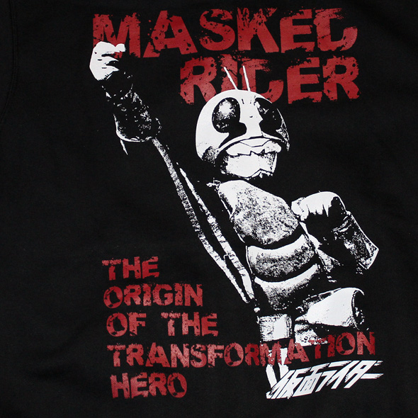 旧一号ライダーから大幅に変更されたカラーリングがスタイリッシュでよりヒーローとしてのカッコよさを感じさせてくれた新一号ライダー!そんな新一号ライダーをシンプルに配置し着やすいデザインにしています。パーカーは裏起毛で肉厚なジップアップタイプです!