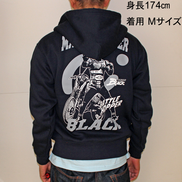 製品名: 仮面ライダーBLACK「バトルホッパー」ジップアップパーカー(ネイビー)