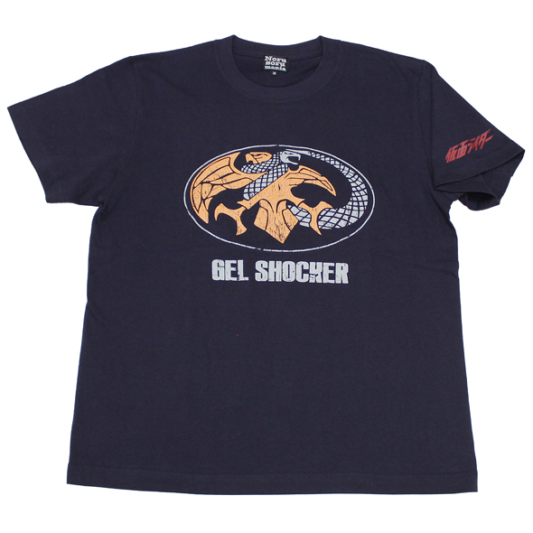 打倒ライダーを果たせぬショッカーに見切りをつけた首領がアフリカ奥地で暗躍していた秘密組織「ゲルダム団」と手を組み結成した新組織「ゲルショッカー」!そのシンボルマークをプリントしたTシャツです!ショッカーの象徴のワシとゲルダムの蛇を絡み付かせた邪悪なデザイン!*古着風ダメージプリントです。