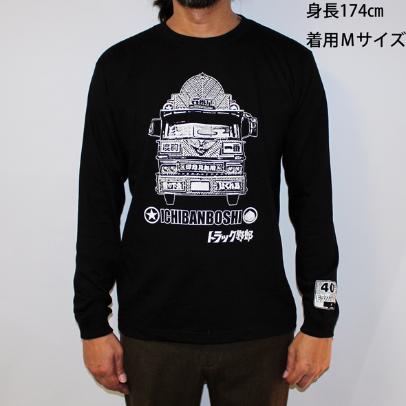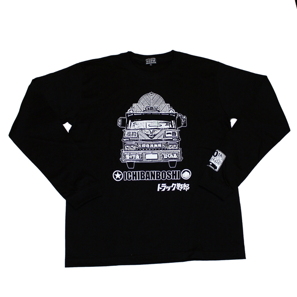 商品説明: 半袖Tシャツでも好評だった「トラック野郎」最終作(故郷特急便)の一番星号がプリントされている長袖Tシャツです!一番星号のフロントマスクをTシャツ前面に。そして背中には斜めからの迫力ある姿と行灯のデザインをドドンとプリントしてあります。袖口にリブの付いた実用的かつスタイリッシュなデザインの長袖Tシャツです!