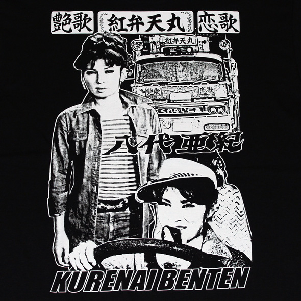 映画「トラック野郎」シリーズがスタートする以前からトラックドライバーに絶大な人気があった八代亜紀!そんな八代亜紀が女トラッカー「紅弁天」役でシリーズ5作目「度胸一番星」に登場した事でさらにトラックドライバー達のマドンナとして現在に至るまで愛され続けています!キュートなキャラクタ―「紅弁天」をプリントしたTシャツはシリアルナンバー付400枚完全限定品です!ノルソルマニアの関連shopと八代亜紀コンサート会場などでしか手に入りません。