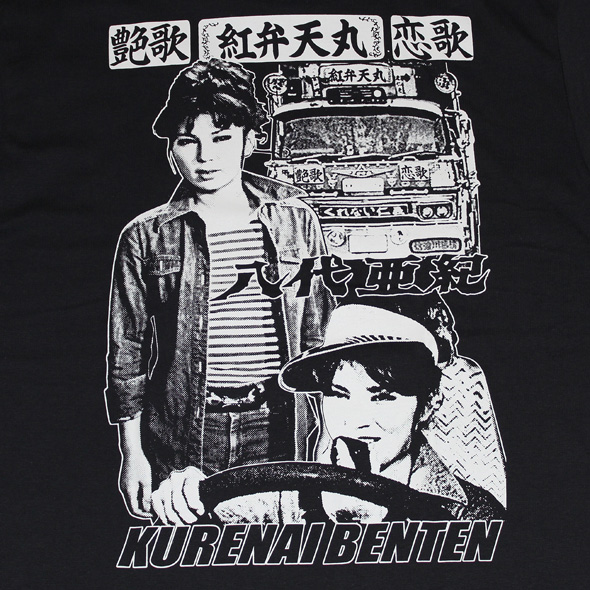 映画「トラック野郎」シリーズがスタートする以前からトラックドライバーに絶大な人気があった八代亜紀!そんな八代亜紀が女トラッカー「紅弁天」役でシリーズ5作目「度胸一番星」に登場した事でさらにトラックドライバー達のマドンナとして現在に至るまで愛され続けています!キュートなキャラクタ―「紅弁天」をプリントしたTシャツはシリアルナンバー付400枚完全限定品です!ノルソルマニアの関連shopと八代亜紀コンサート会場などでしか手に入りません。