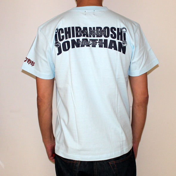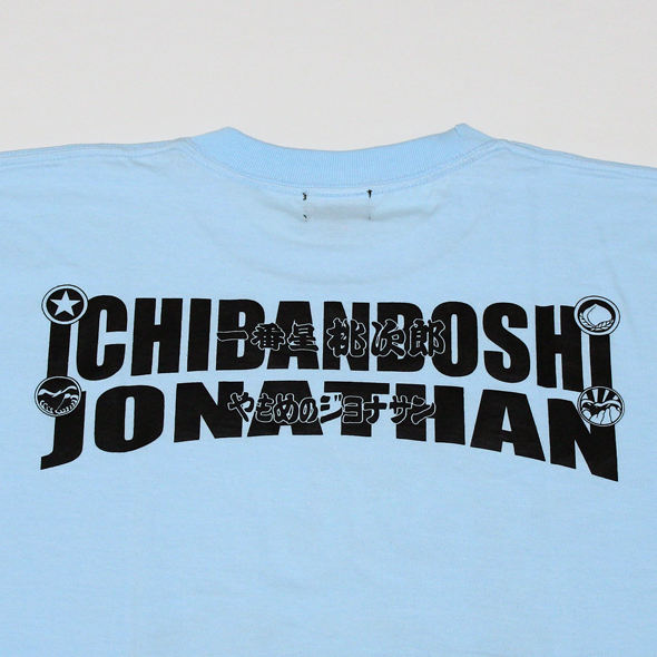 シリーズ3作目「望郷一番星」の台本の表紙に描かれたイラストをプリントしたTシャツです!あまり一般的にみかける事のない台本の表紙に描かれたイ単色イラストですが躍動感があって楽しさの伝わってくる素晴らしいイラストです。「望郷一番星」と「東映株式会社東京作品」の文字も台本に書かれていたままです。イラストの一部や文字の一部のプリントがかすれているのも古い台本を元にしているためです。背中には仲良くICHIBANBOSHIとJONATHANのロゴが並んでプリントしてあります。