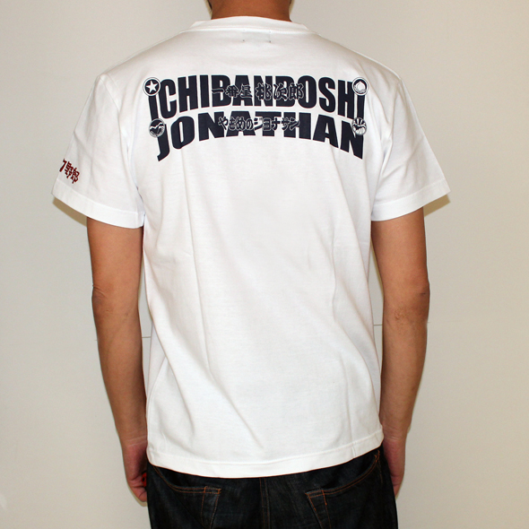 商品説明: シリーズ3作目「望郷一番星」の台本の表紙に描かれたイラストをプリントしたTシャツです!あまり一般的にみかける事のない台本の表紙に描かれたイ単色イラストですが躍動感があって楽しさの伝わってくる素晴らしいイラストです。「望郷一番星」と「東映株式会社東京作品」の文字も台本に書かれていたままです。イラストの一部や文字の一部のプリントがかすれているのも古い台本を元にしているためです。背中には仲良くICHIBANBOSHIとJONATHANのロゴが並んでプリントしてあります。