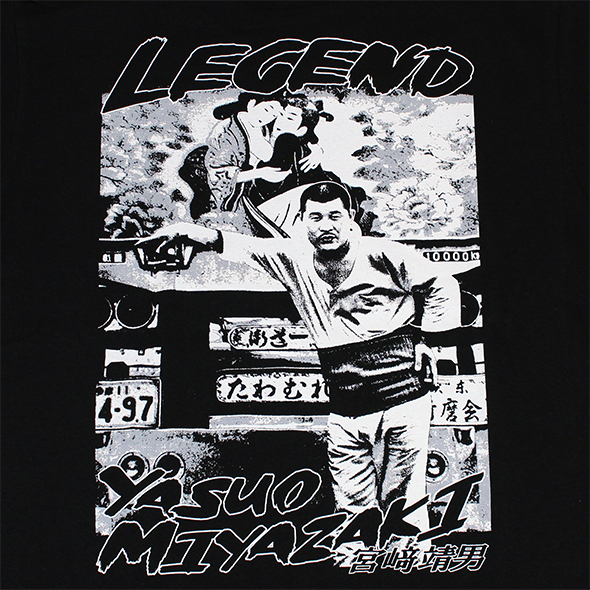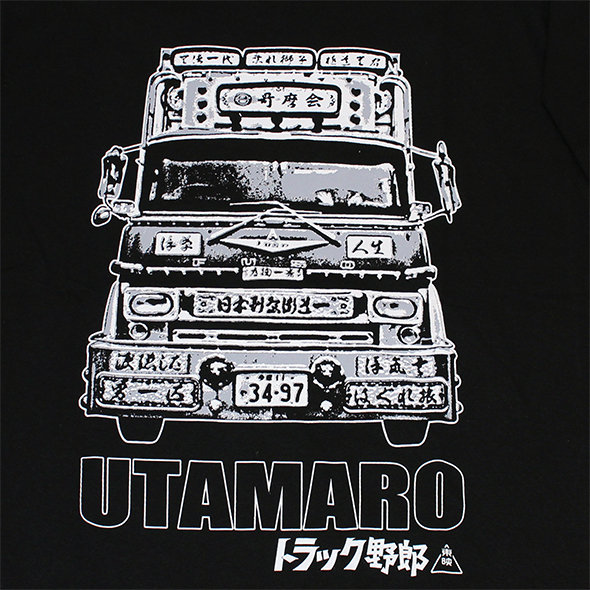 「トラック野郎」の制作発表と同時に結成されたデコトラグループ「哥麿会」の初代会長にして劇用協力車を全作に渡ってコーディネイト。またトラックドライバー「哥麿」役として本編に出演するなど映画制作において重要なキーマンのひとりだった宮崎靖男氏。現在も「関東み組」の終身名誉会長として活動中。「トラック野郎」の映画シリーズ終了からすでに40年超にもかかわらずデコトラの灯が今も全国で輝き続けているのは、映画が与えてくれた強烈なインパクトが多くのフォロワーを増やし一過性ではない大きなムーブメントを作ったからでしょう。デコトラ黎明期から創意工夫でこのムーブメントを作り上げてこられた宮崎氏をフィーチャーしたデザインのTシャツです!